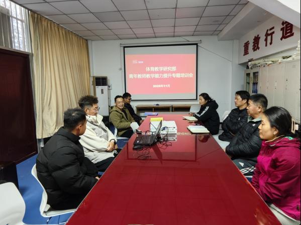 为落实学校督导教学检查反馈要求,提升青年教师教学素养,2025年11月24日,体育教学研究部组织开展青年教师教学能力提升专题培训会。体育部副主任王健、技能教研室主任董英辉、艺术教研室任晓冬、体育部督导组组长张馨娇、体质测试主任安大庆,教师代表祝河德、刘晓坤、丁鹏祥、王鹏等参与本次会议。