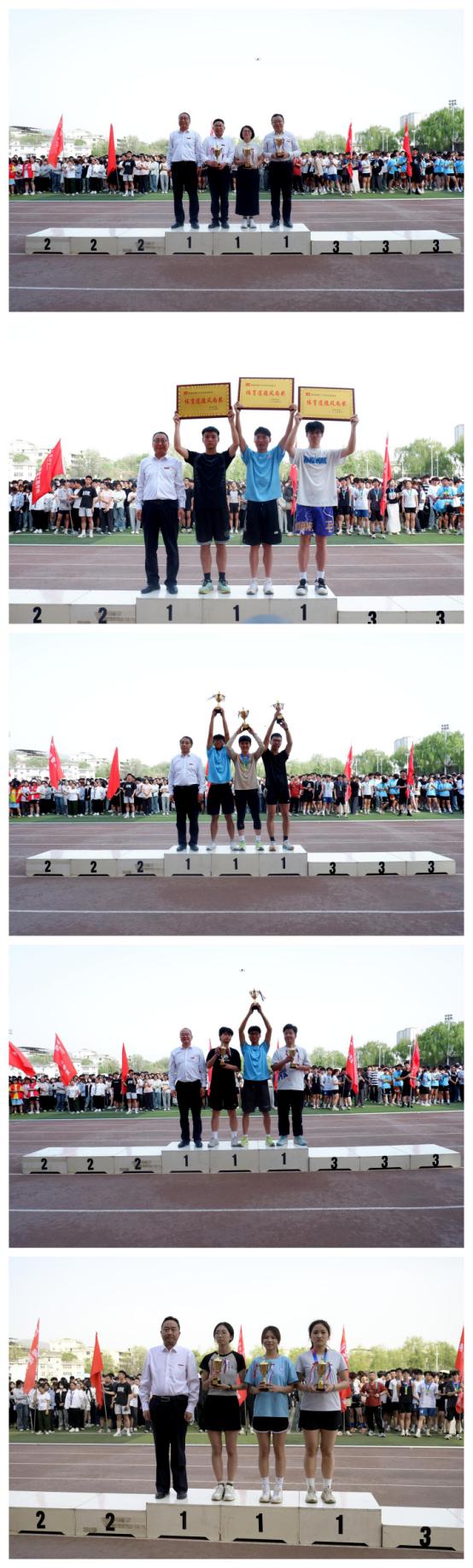 4月18日下午,我校2025年田径运动会各项赛事顺利完成,圆满落幕。校党委副书记刘宝盈,副校长王新军、郭瑾、张向东出席闭幕式。各二级学院党政负责人、运动会组委会成员及师生代表参加闭幕式。闭幕式由张向东主持。